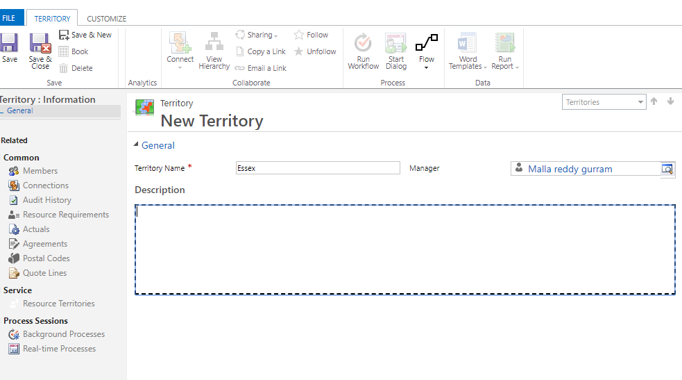 Dynamics 365 > Administration > Territories > Create new Territory: