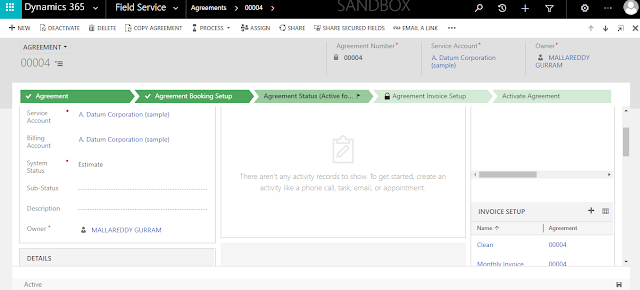 Go back to the Agreement record as you can see now the agreement is defined booking setup defined and finally invoice setup has been defined.