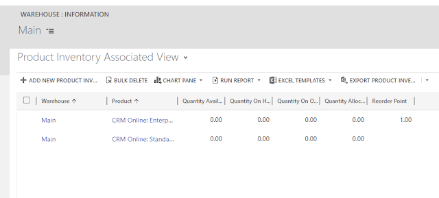 Go to Dynamics 365 > Field Service > Warehouse > Main>