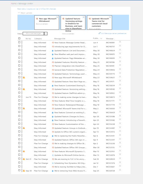Read about staying on top of office 365 changes: