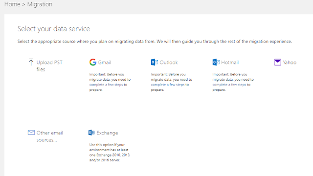 Migration includes : Upload PST files, Gmail, Outlook, Hotmail, Yahoo, Other email, Exchange..