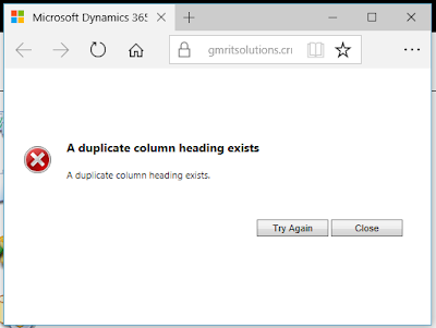 DUPLICATE COLUMN HEADING EXISTS ERROR IN DYNAMICS 365