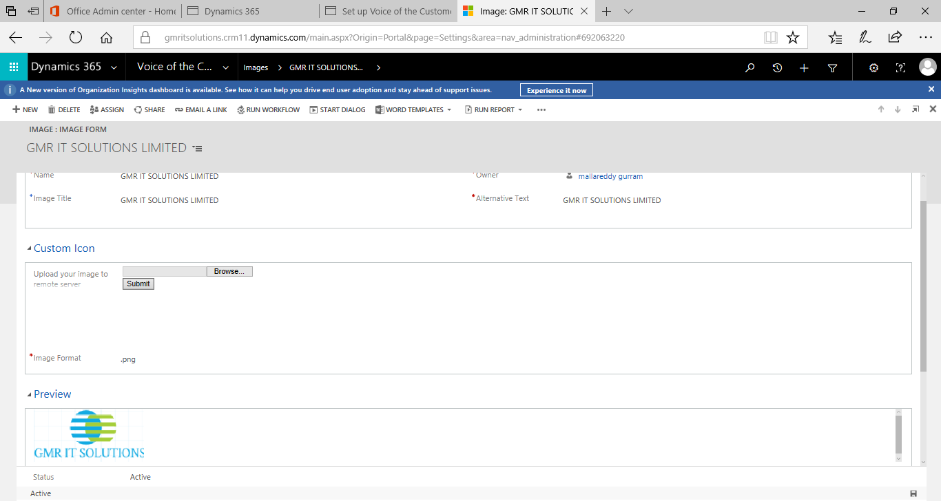 And from there you can go ahead and create an Image record and upload a logo that you want to use in your survey will be accomplished in later steps.  After you upload the logo and save the record you’ll be able to see a preview of the image.