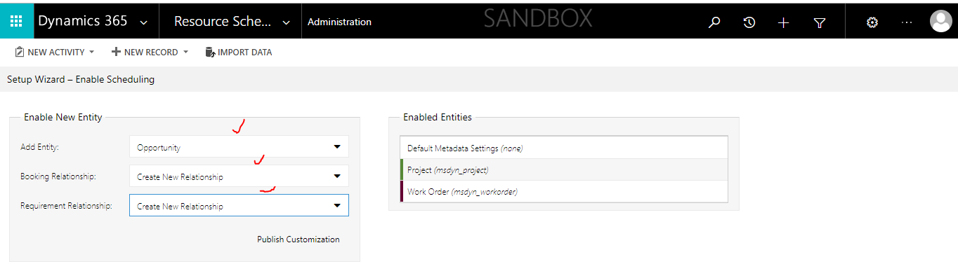 Click on the “Enable Resource Scheduling for Entities..