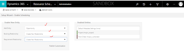 By default the system have all the Field Service entities are enabled and for instance you want to enable “Opportunity” entity.