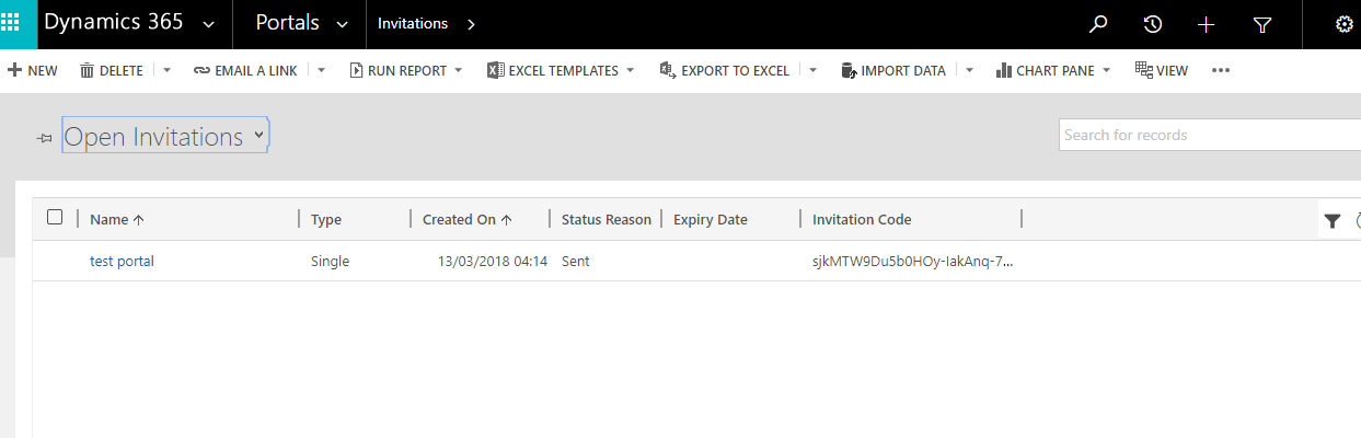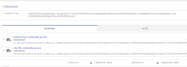 Then from the above image, you can see name = “Test Portal Invitation”, Type=”Group”, and save the record and then in the sub grid “Invited Contacts” select two contacts from the search icon inside the sub grid.