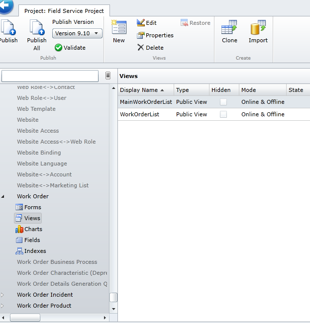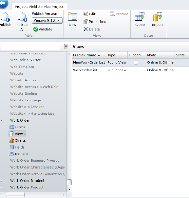When you click on the “Views”, can see the views for that “Work Order” Entity, you can modify by double clicking on the view you want to modify.