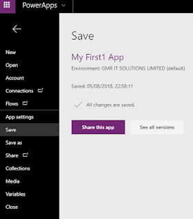 As you can see the new app is ready on the power app design page and click on the preview the power app on the upper right hand side play symbol or F5.