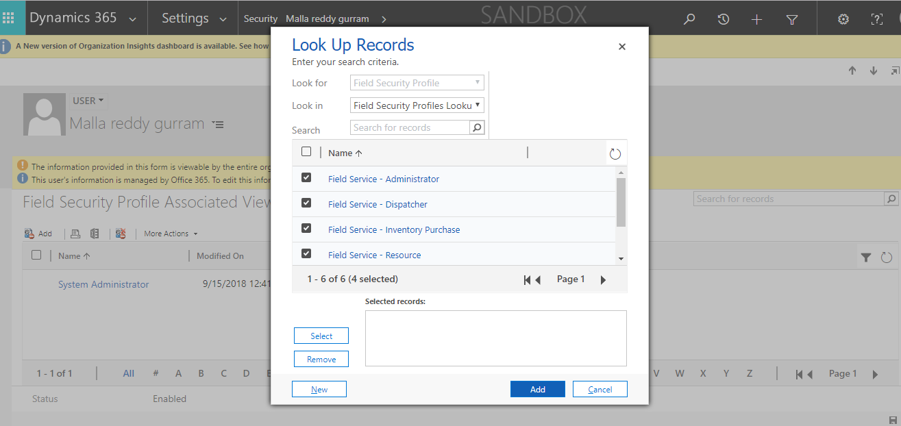 Common problem whenever we make any changes to the security roles of the Service Manager’s in the Field Service then don’t forget make sure you select the Field Security Profile for that user in Dynamics 365 and select the roles, as shown in the below image.